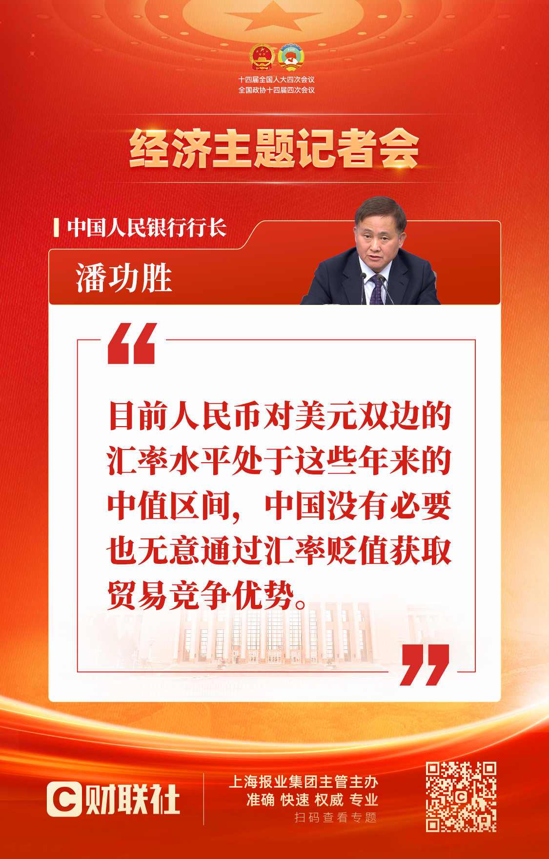 潘功胜表示,今年以来人民币对美元汇率有所升值,与我国经济持续向好、美元指数走弱、企业季节性结汇等都有关。目前人民币对美元双边的汇率水平处于这些年来的中值区间,中国没有必要也无意通过汇率贬值获取贸易竞争优势。