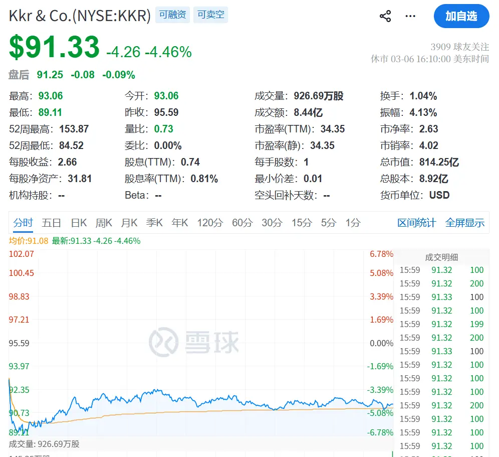 除了贝莱德,KKR、Ares Management等另类资产管理公司的股价也大幅下挫局。