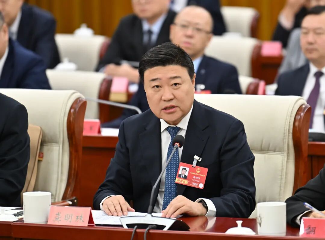 王伟中代表回答人民日报记者提问。