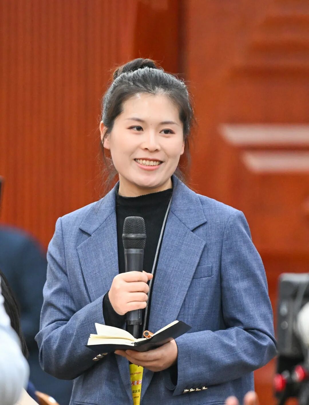 赵会杰代表回答《农民日报》记者提问。