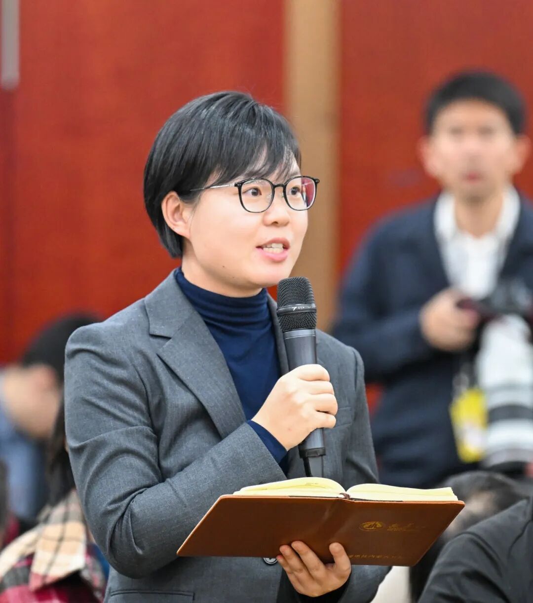 敖慧然代表回答光明日报记者提问。