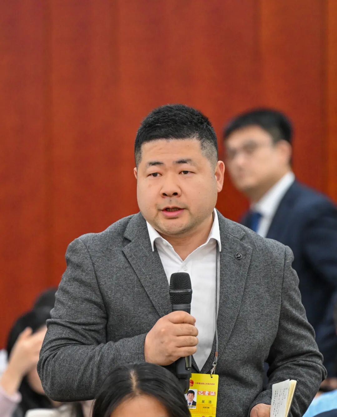 包钢代表回答新华社记者提问。