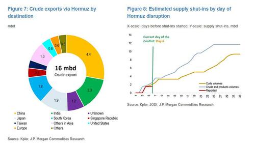 对此,摩根大通在周六的最新报告中指出,随着炼油厂关停和出口受限开始损害原油加工和地区供应流动,市场正从单纯的地缘政治风险定价转向应对实质性的运营中断。冲突仅开始六天,伊拉克已经削减了约150万桶/日的供应,而科威特的储油罐似乎也即将填满。