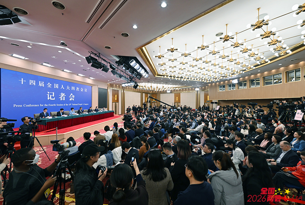 3月7日,十四届全国人大四次会议民生主题记者会在梅地亚中心新闻发布厅举行。人民网记者 翁奇羽摄
