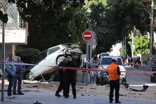 ▲当地时间2026年3月8日,以色列特拉维夫,以色列警方及急救人员聚集在伊朗空袭现场 图据视觉中国