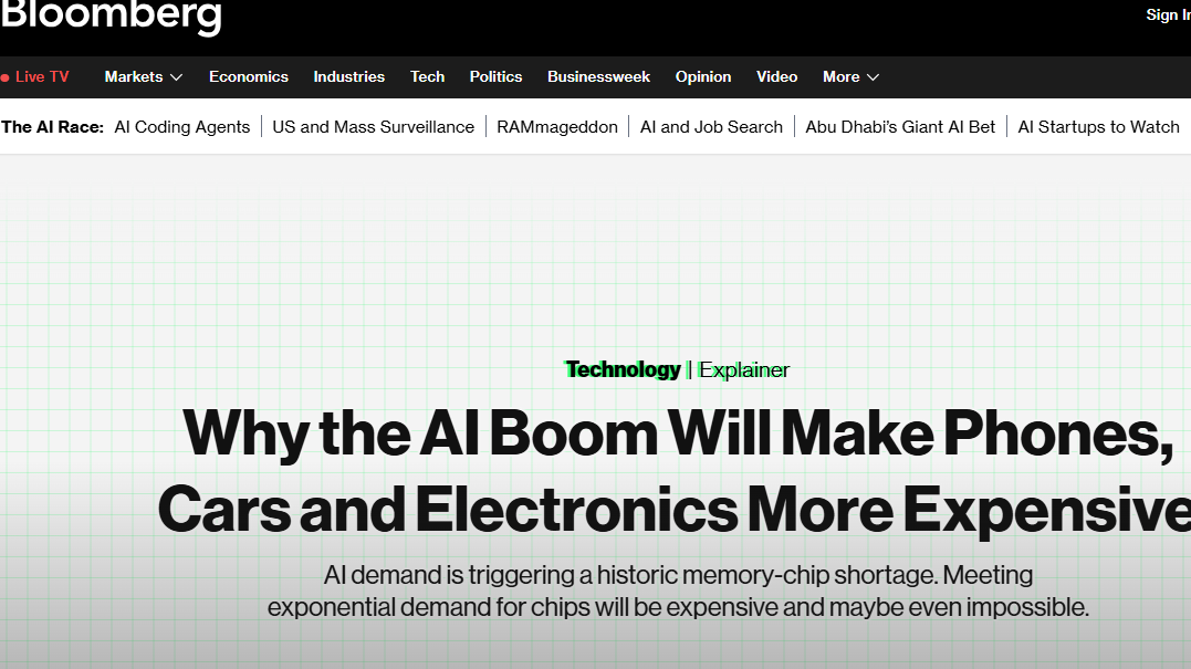3月9日彭博社消息,受AI热潮推动,全球正遭遇历史性内存芯片短缺,DRAM、NAND等芯片价格飙升,已严重冲击手机、汽车、电脑等多个行业,多家国际企业纷纷发声预警。