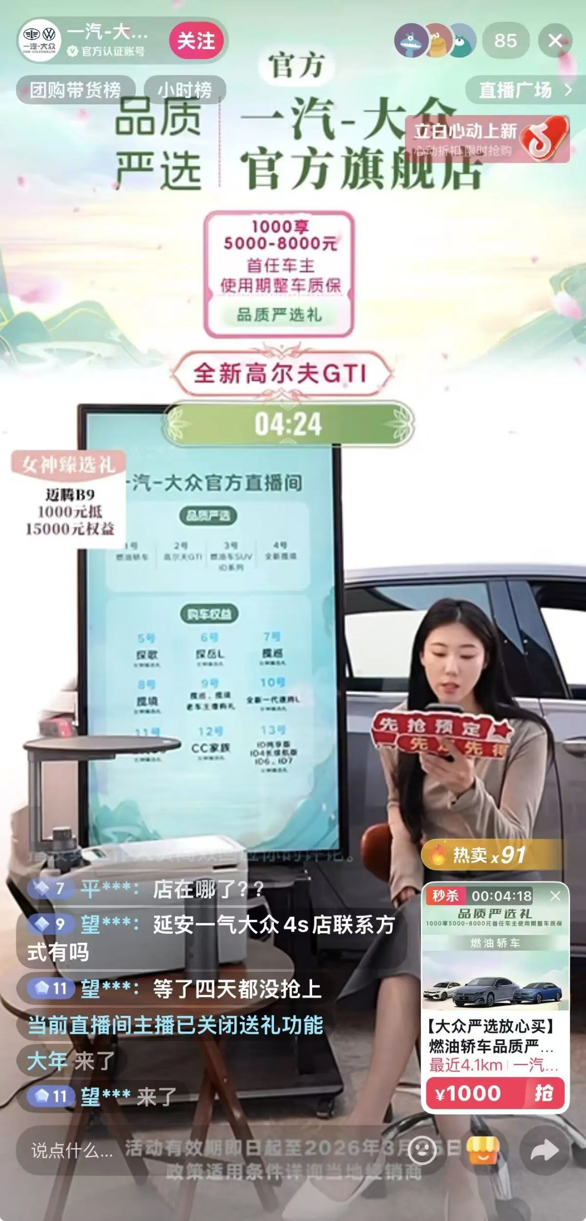 “1.2万买中大型SUV!”“5.99万全款提车!”“直降5万,错过等一年!”……当这些让人心跳加速的字眼在直播间刷屏,你是否也忍不住想点下那个“立即下单”按钮?