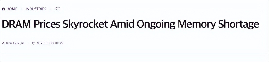 3月12日,Counterpoint Research在线上研讨会中公布数据:2月中旬至3月上旬,64GB服务器用DDR5规格RDIMM内存条价格环比上涨150%;12GB移动端LPDDR5X内存价格上涨130%;笔记本电脑所用8GB DDR4规格SO-DIMM内存价格上涨180%。NAND闪存产品价格同步上涨130%至150%,涨幅创下历史新高。