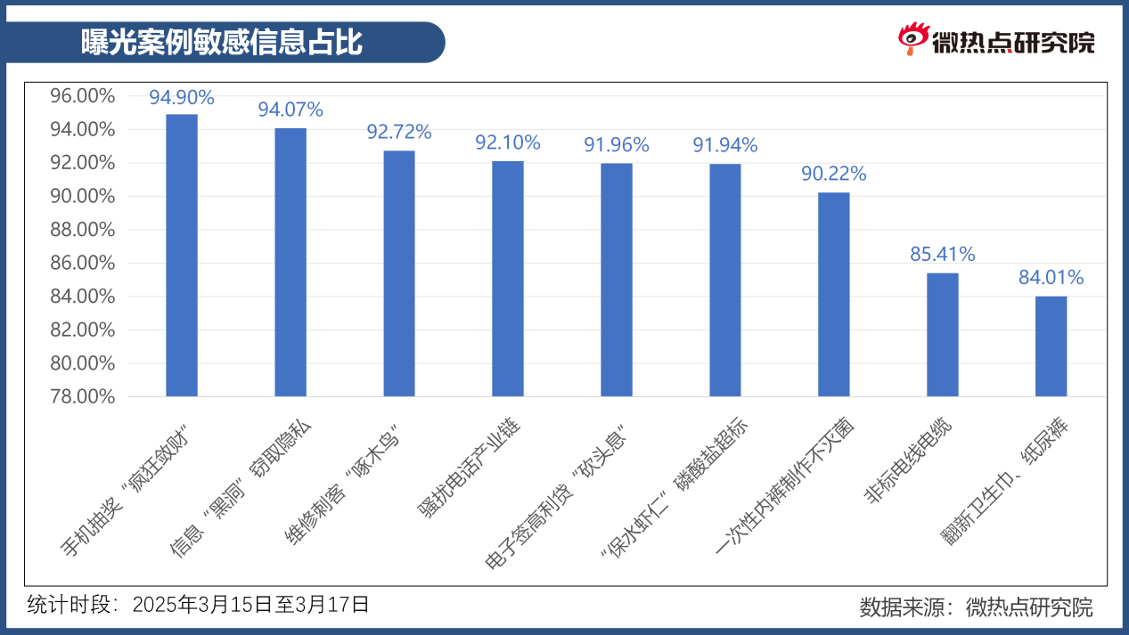 从敏感信息内容来看,2025年曝光的“卫生巾、婴儿纸尿裤残次品翻新再生产”“一次性内裤灭菌标志伪造”“工人称保水冷冻虾仁自己从不吃”等案例,因其贴近日常生活、涉及广泛使用的消费品,引发公众高度关注和不满。