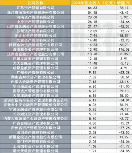 图:2024年地方AMC营业收入排名