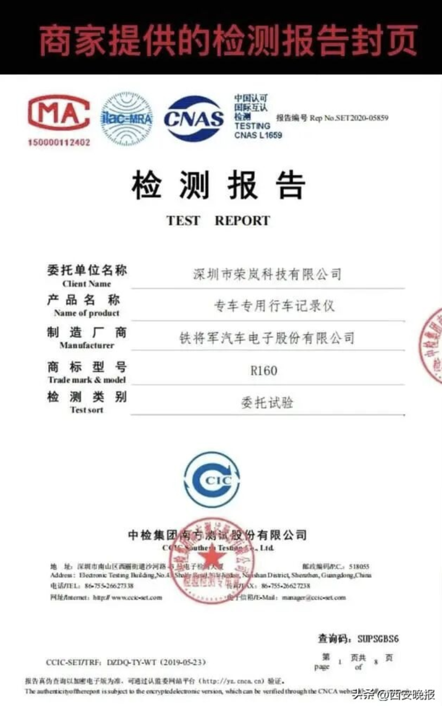 网购平台购买行车记录仪,商家提供产品检测报告疑为P图