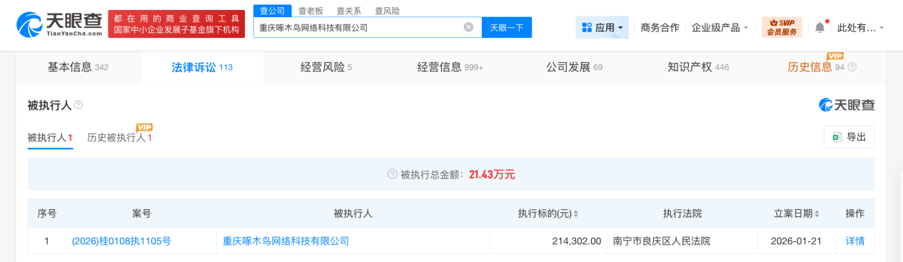天眼查数据显示,该公司成立于2014年,注册资本约2409万元。除了此次曝光,该公司此前已被强制执行约21.4万元,并深陷多起法律诉讼,案由涵盖劳动争议、合同纠纷及侵权责任等。频繁的官司与执行记录显示,其信誉体系已遭受重创,经营步履维艰。