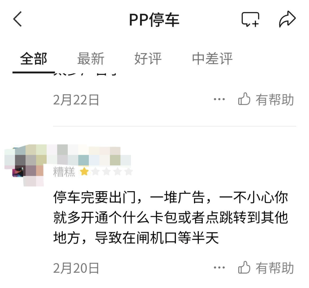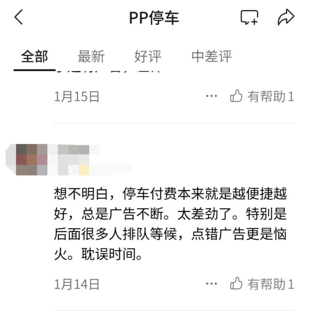 记者在一些投诉平台和社交平台检索发现,不少网友发文吐槽该停车平台强行弹出广告的问题,还有网友在PP停车小程序的评价中写道:“想不明白,停车付费本来就是越便捷越好,总是广告不断。特别是后面很多人排队等候,点错广告更是令人恼火。耽误时间。”“停车要出门,一堆广告,一不小心你就多开通个什么卡包或者跳转到其他地方,导致在闸机口等半天。”