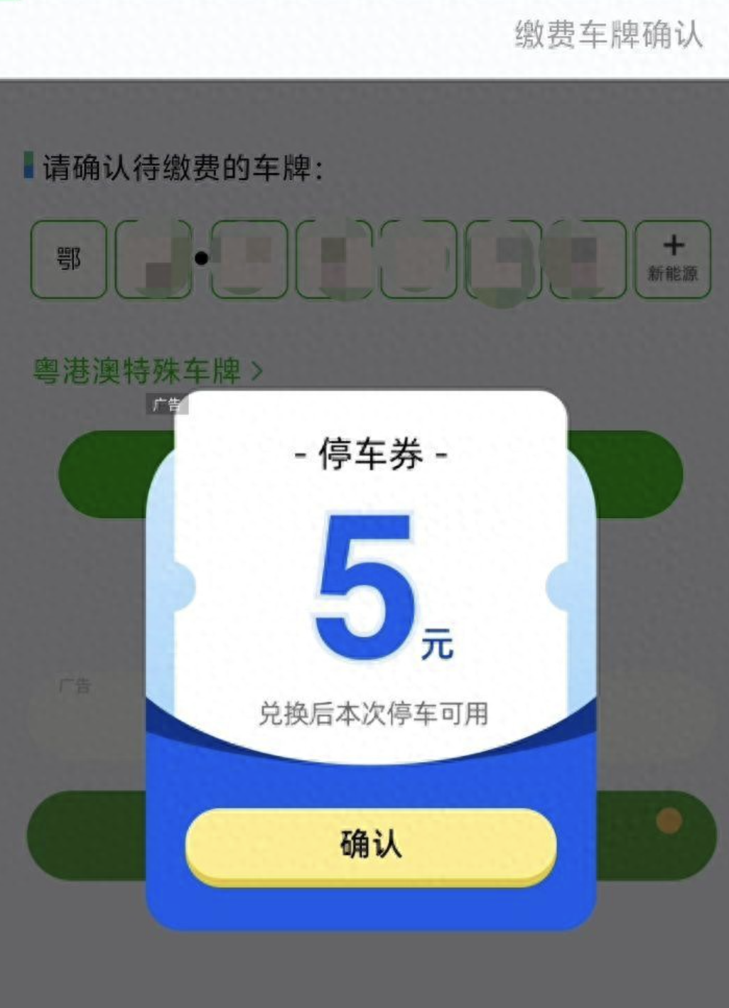确认兑换停车券后却跳到保险广告