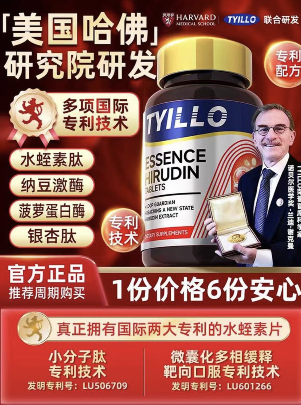 据新黄河此前报道,不少消费者被泰洛水蛭素的“高大上”宣传所吸引。商家在产品页面醒目位置标注“美国哈佛研究院研发”“诺奖得主兰迪·谢克曼荣誉首席科学家”“国际三大专利”等卖点,将一瓶成本未知的普通食品卖出了近300元的价格。