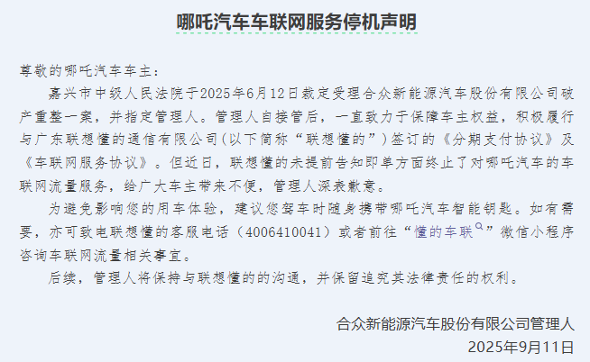 哪吒汽车的APP虽然能正常使用,但2025年9月终止了车联网服务,车主只能自购流量。5.9元/月的基础流量包只能支持远程车控。尹小姐平时通过手机热点连接车机,再使用高德地图与娱乐功能。