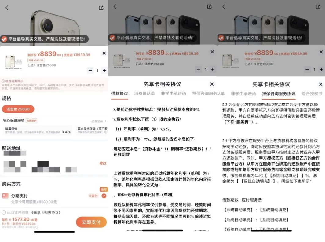 近日,中新经纬就平台商品价格偏高、分期贷款利率、用户个人信息泄露等问题向上述平台发送采访函,截至发稿时尚未收到回复。