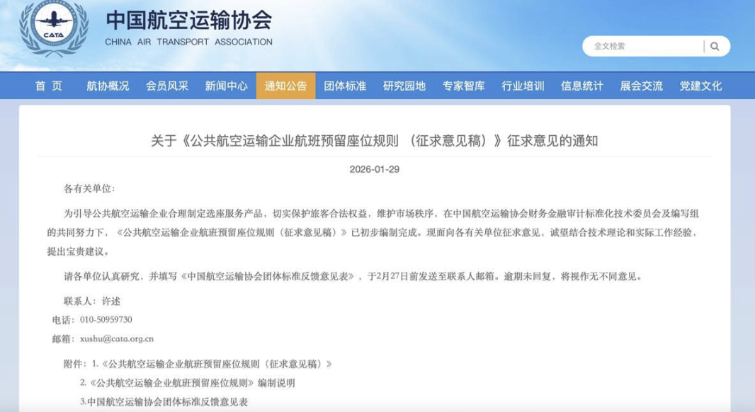 针对锁座问题,今年1月,中国航空运输协会发布《公共航空运输企业航班预留座位规则(征求意见稿)》,首次明确免费选座比例下限、强制公示锁座规则。网友称,盼望新规早日落地实施。有业内人士分析,此举填补了国内航班预留座位管理的行业标准空白。