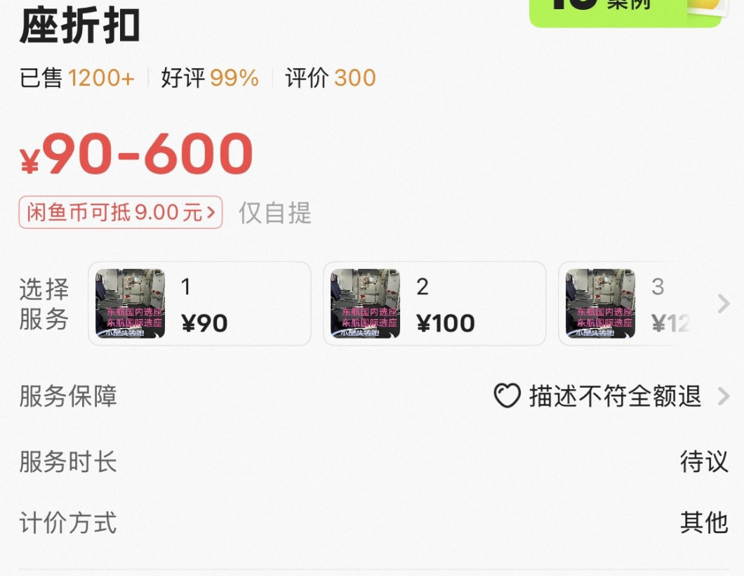 航司APP里“没座可选”的同时,二手平台上的“付费选座”生意却已初具规模。
