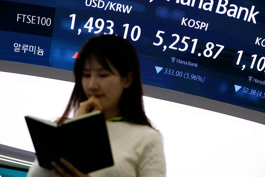 这是3月9日在韩国首尔一家银行拍摄的股指显示屏。新华社发(全休相摄)