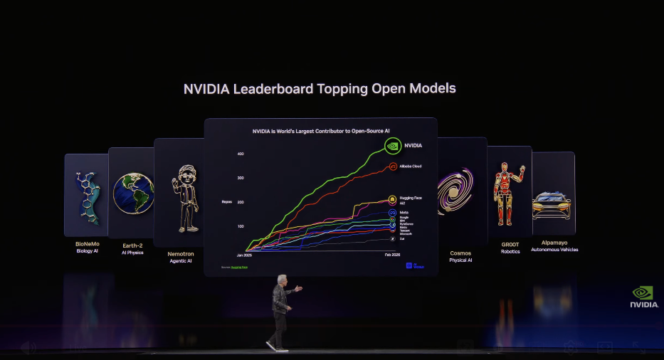 英伟达还为智能体系统增加了许多能力。其中最重要的一点是:企业可以构建自己的自定义模型和自定义代理。黄仁勋强调,英伟达已经是全球开放模型的最大贡献者,站在AI模型各个领域的最前沿。