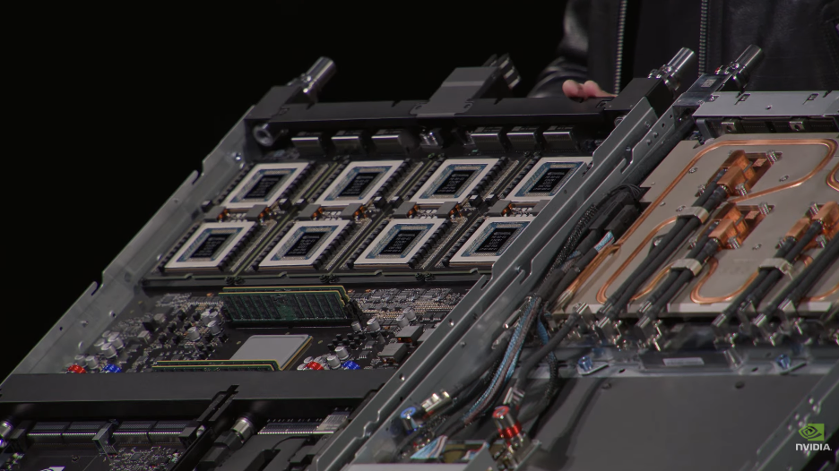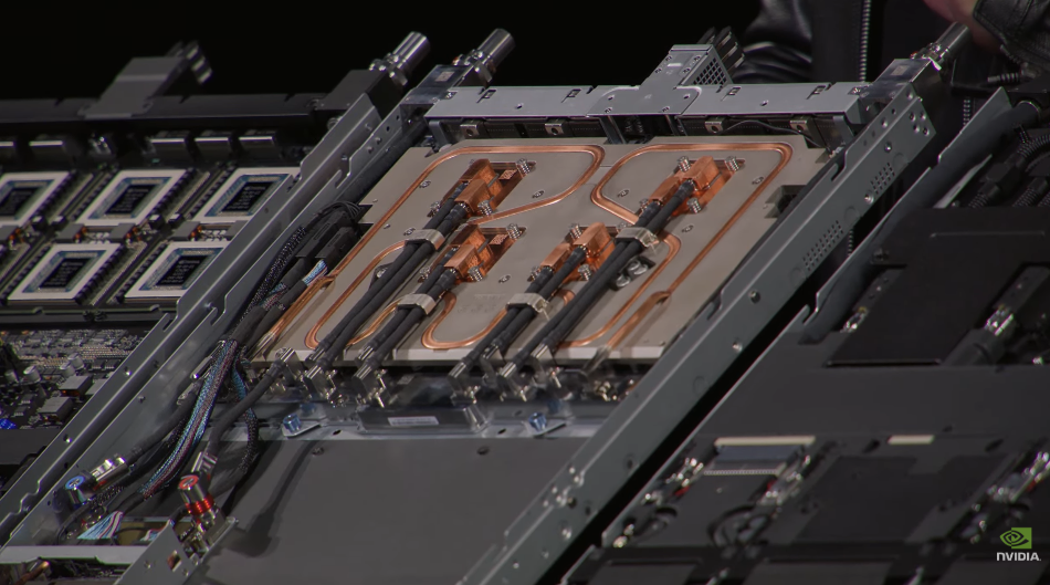 与Rubin横向滑入机架不同,Rubin Ultra在Kyber机架中是垂直插入的。在一个NVLink域中可连接144块GPU。