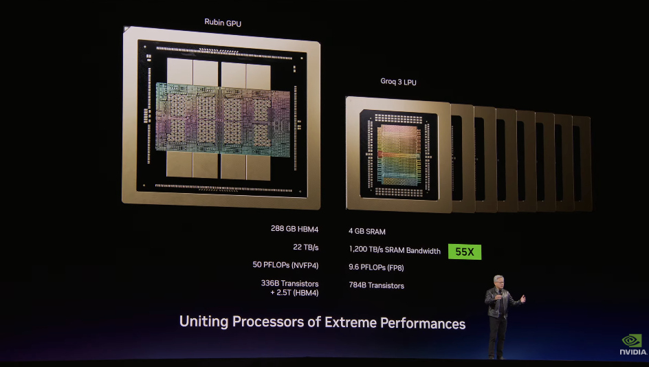 他表示,如果你的工作负载主要是高吞吐任务,那么只使用Vera Rubin就很好。但如果你的工作负载包含大量编程任务或高价值工程任务(例如Token生成),应该在数据中心中加入Groq芯片。