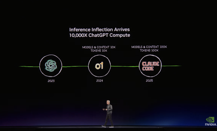 03:06 黄仁勋:过去三年AI产业的3个里程碑产品分别是ChatGPT、o1推理模型,以及Claude Code智能体,象征着推理需求的激增。