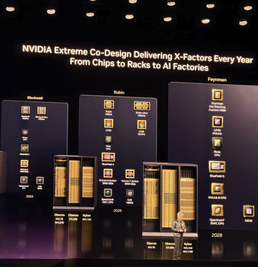 黄仁勋说:“去年这个时候我说过,当时站在那个时间点上,我们看到了大约5000亿美元的需求——而且是高度确定的需求,包括到2026年的Blackwell和Rubin采购订单。那是我去年说的。”