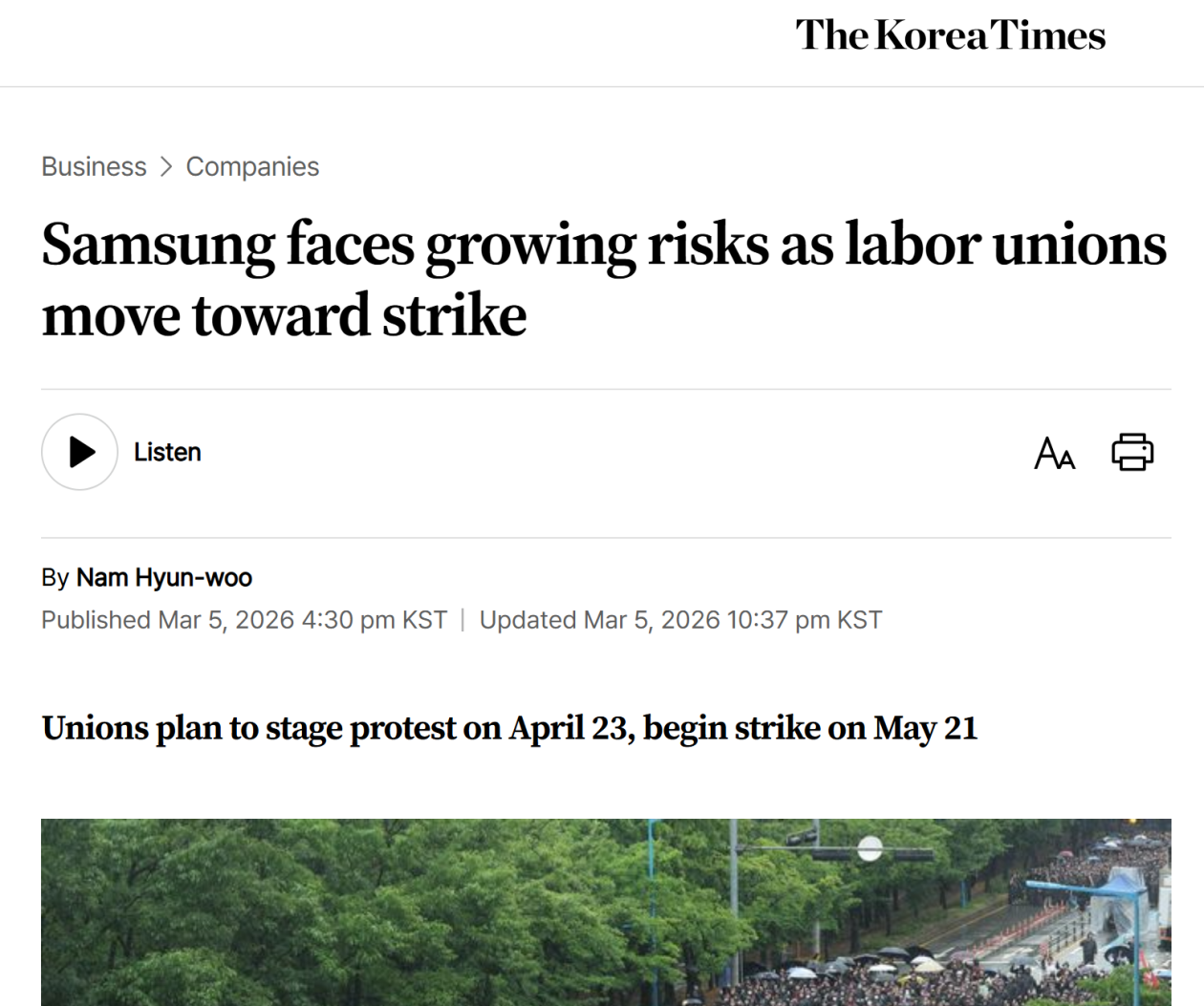 3月17日消息,据韩媒The Korea Times报道,有消息称三星半导体业务遭遇严重劳资纠纷,其芯片部门罢工风险持续加剧,与此同时,三星手机部门也深陷发展危机,多重困境之下,三星半导体业务的正常推进受到严峻挑战。