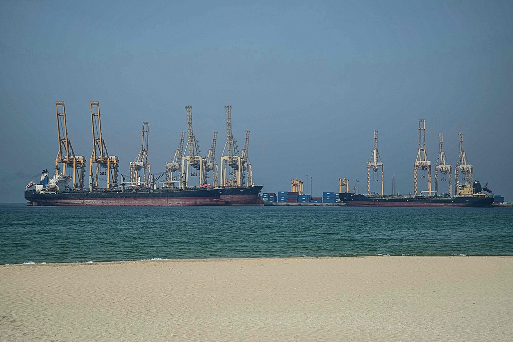 2025年,一艘油轮停靠在霍尔木兹海峡沿岸的码头。