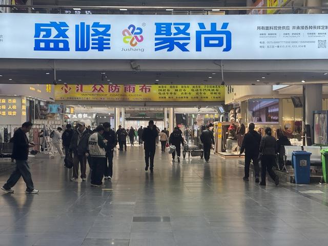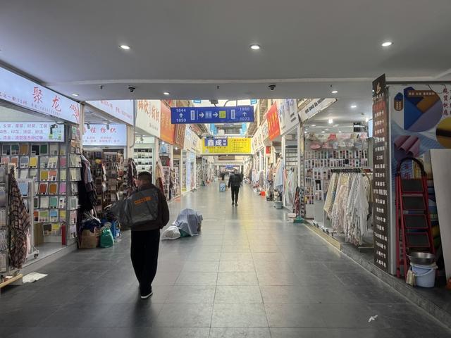 临近中午饭点,市场里的人流量不算特别大,但是仍能见到不少采购商穿梭在这个迷宫般的巨大空间中。他们走出一家店铺后,旋即又拐入另一家,观察和摩挲着各色布料,不时向店内的老板询价。老板们则表现出一种独特的从容:既不冷漠,又不过分热情,对于客商提出的种种问题,总是以最简单的措辞加以回应。