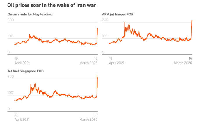 这种飙升反映出,在伊朗多次袭击阿曼的石油终端以及阿联酋在霍尔木兹海峡外的主要石油出口终端富查伊拉之后,中东实际可用供应量正面临着巨大的不确定性。