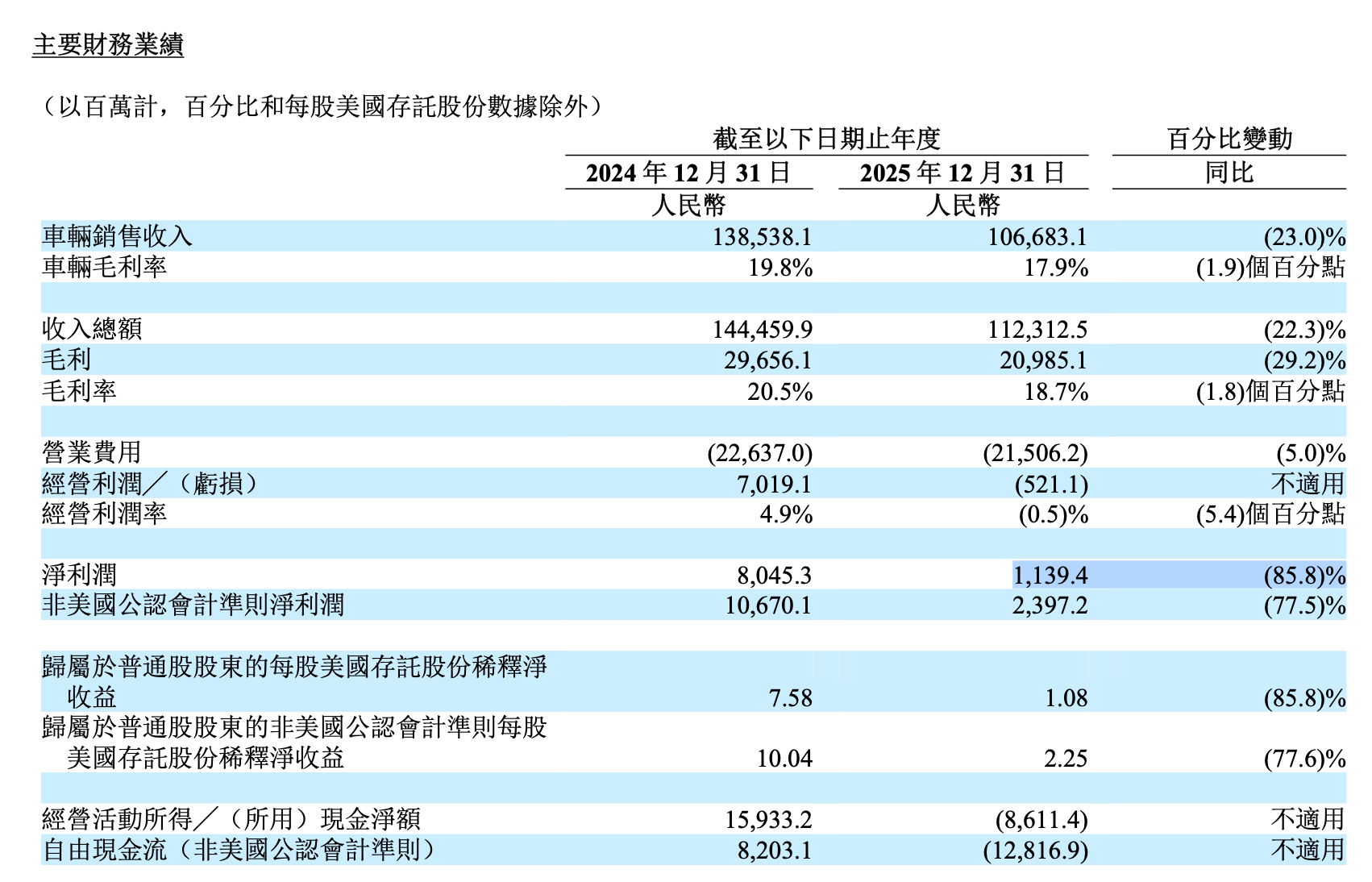 财报显示,去年,理想汽车营收达1123亿元,同比下滑22.3%;净利润约11亿元,同比下滑85.8%。