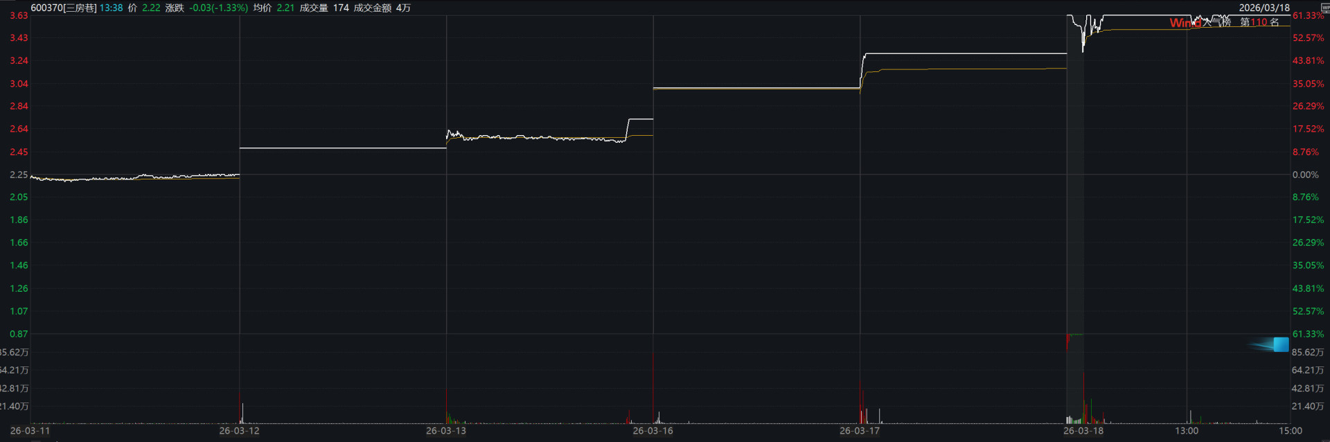 2026年3月12日起,三房巷股价已连续5个交易日涨停,6个交易日累计涨幅达61.33%。