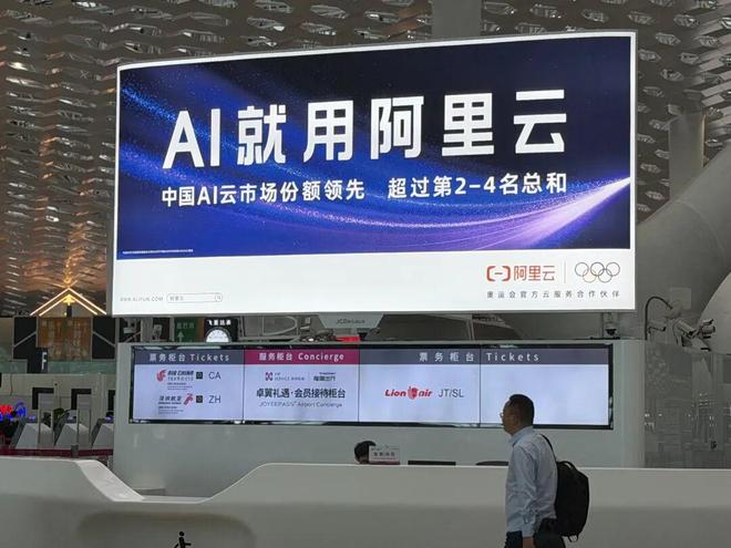 深圳宝安机场航站楼内的阿里云广告牌。马云飞/摄