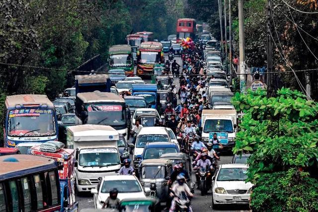 3月8日,孟加拉国首都达卡,大批车辆排队等待加油。图/视觉中国