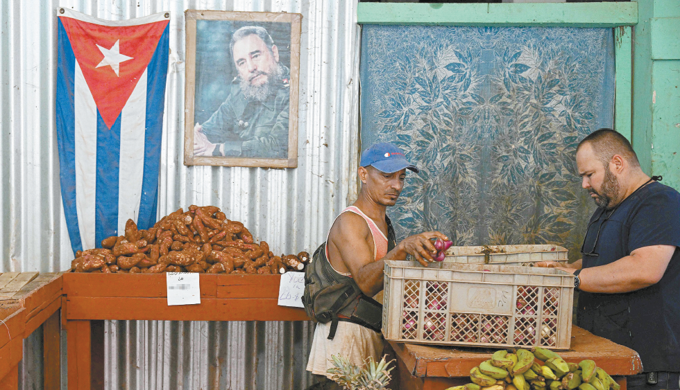 美国近期进一步加大对古巴的压力,包括实施新一轮石油限制措施。图为日前哈瓦那一名食品摊贩在整理货物。