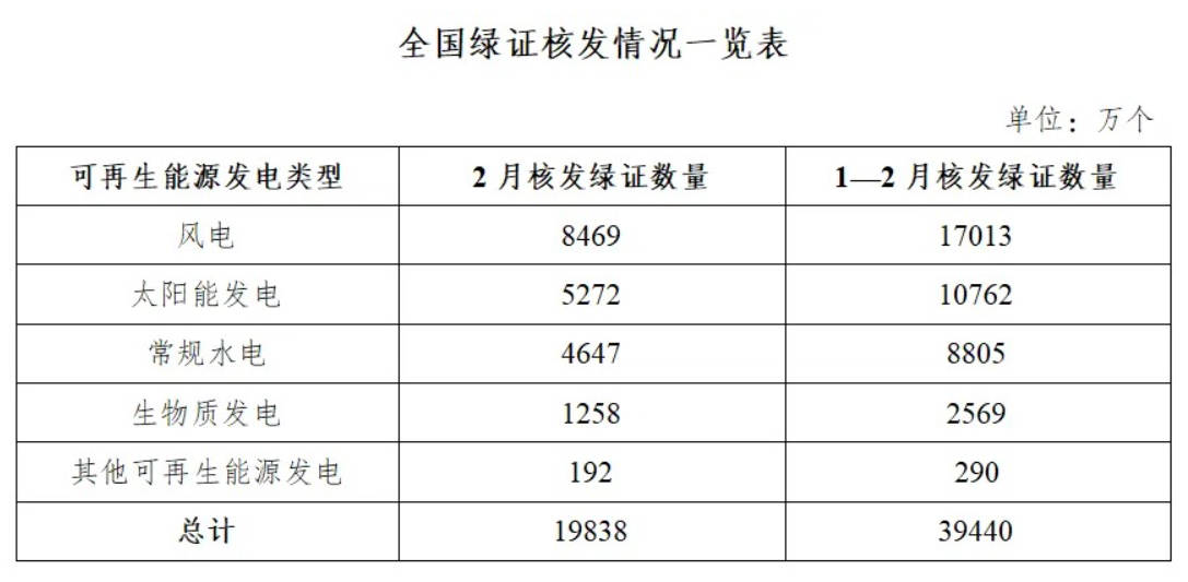 2026年2月国家能源局核发绿证1.98亿个