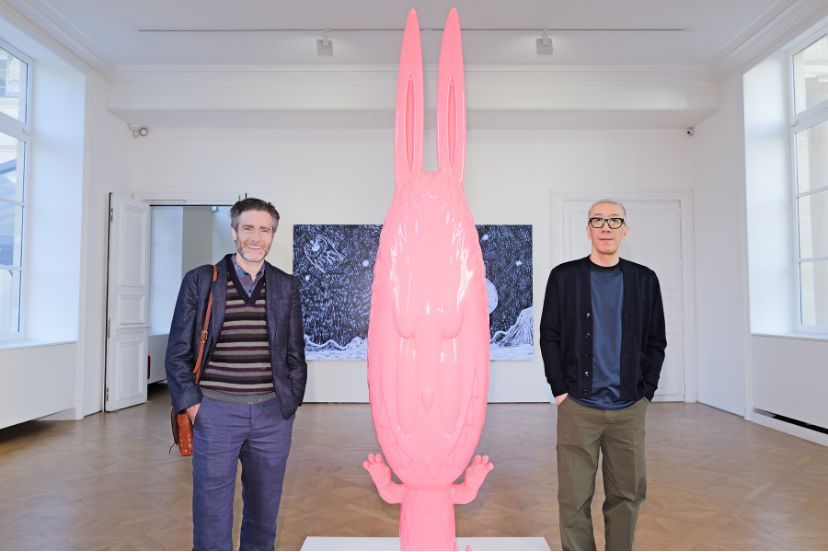 THE MONSTERS创作者龙家升(右)与《帕丁顿熊》系列电影导演保罗·金(左)在THE MONSTERS十周年全球巡展巴黎站合影 图片来源:泡泡玛特供图