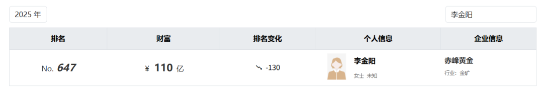 在胡润百富榜的统计中,未在公司担任经营职务的李金阳,身家也从2022年的88亿元,上涨到2025年的110亿元。