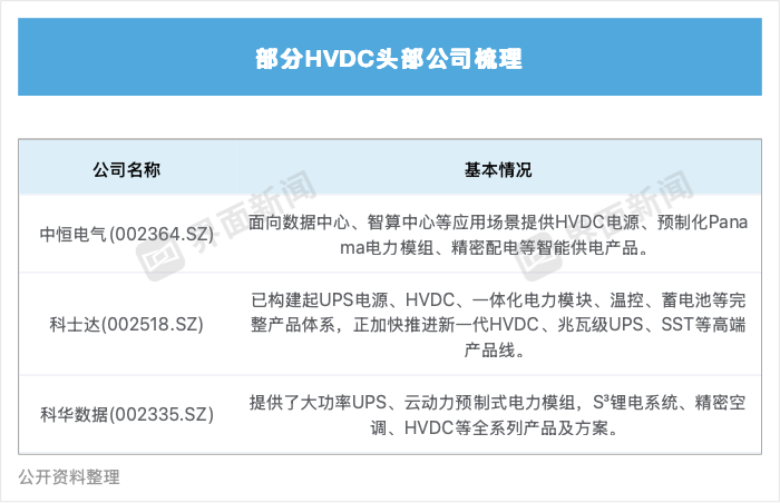 不间断电源(UPS)、高压直流输电(HVDC)等设备商也有望加速发展。