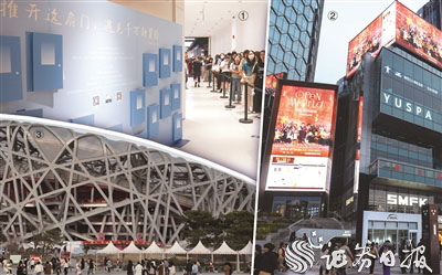 图①演唱会主题快闪活动现场 图②三里屯一号场T+ MALL场外大屏投放演唱会宣传内容 公司供图