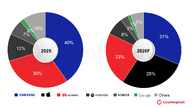 Counterpoint认为,随着厂商寻求利润空间可观的机型来抵消入门级和中端市场的价格压力,折叠屏手机对厂商而言正变得日益重要。在高端智能手机市场,随着厂商不断提升设备耐用性并优化大屏显示下的软件体验,折叠屏手机也正逐步确立其更清晰的地位。