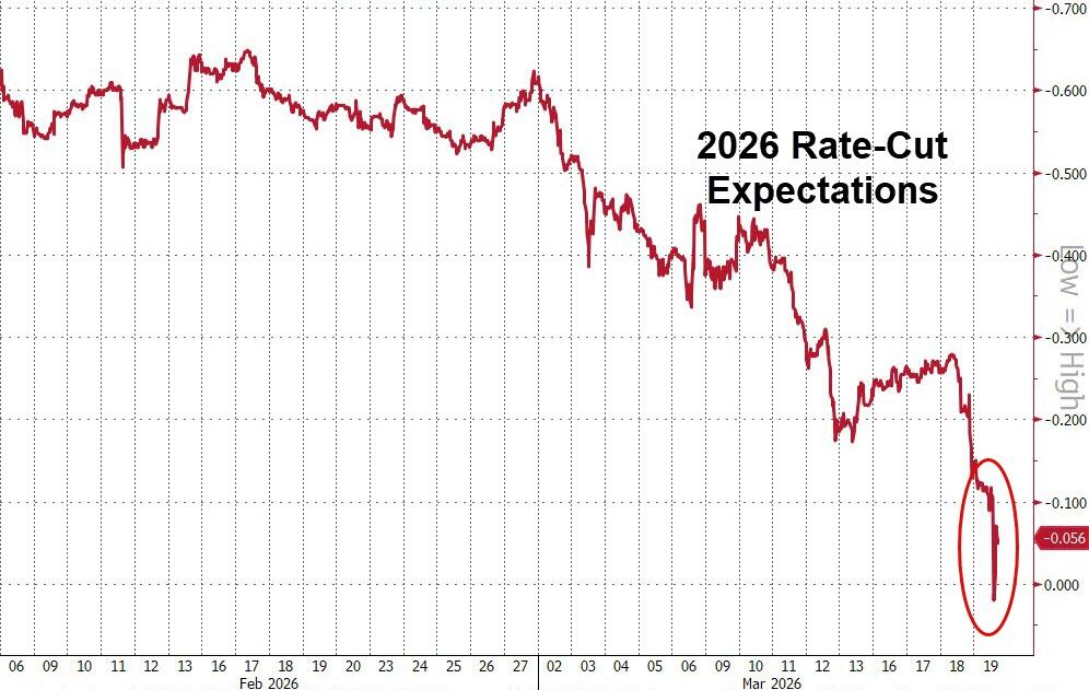 自上月底美伊爆发开始以来,交易员们已大幅削减了对美联储今年宽松货币政策的押注,并预期其他央行将在年内加息。而在过去几天经历了各大央行的议息会议后,人们无疑加深了这一市场押注。投资者在主要央行暗示对油价飙升可能引发通胀冲击的新担忧后,纷纷押注利率可能进一步走高。