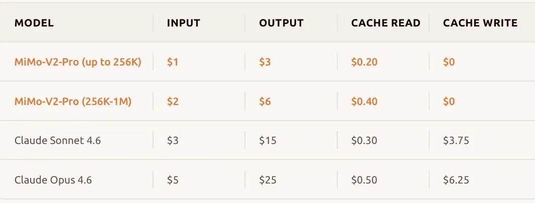 MiMo-V2-Pro 和Claude的API服务收费标准