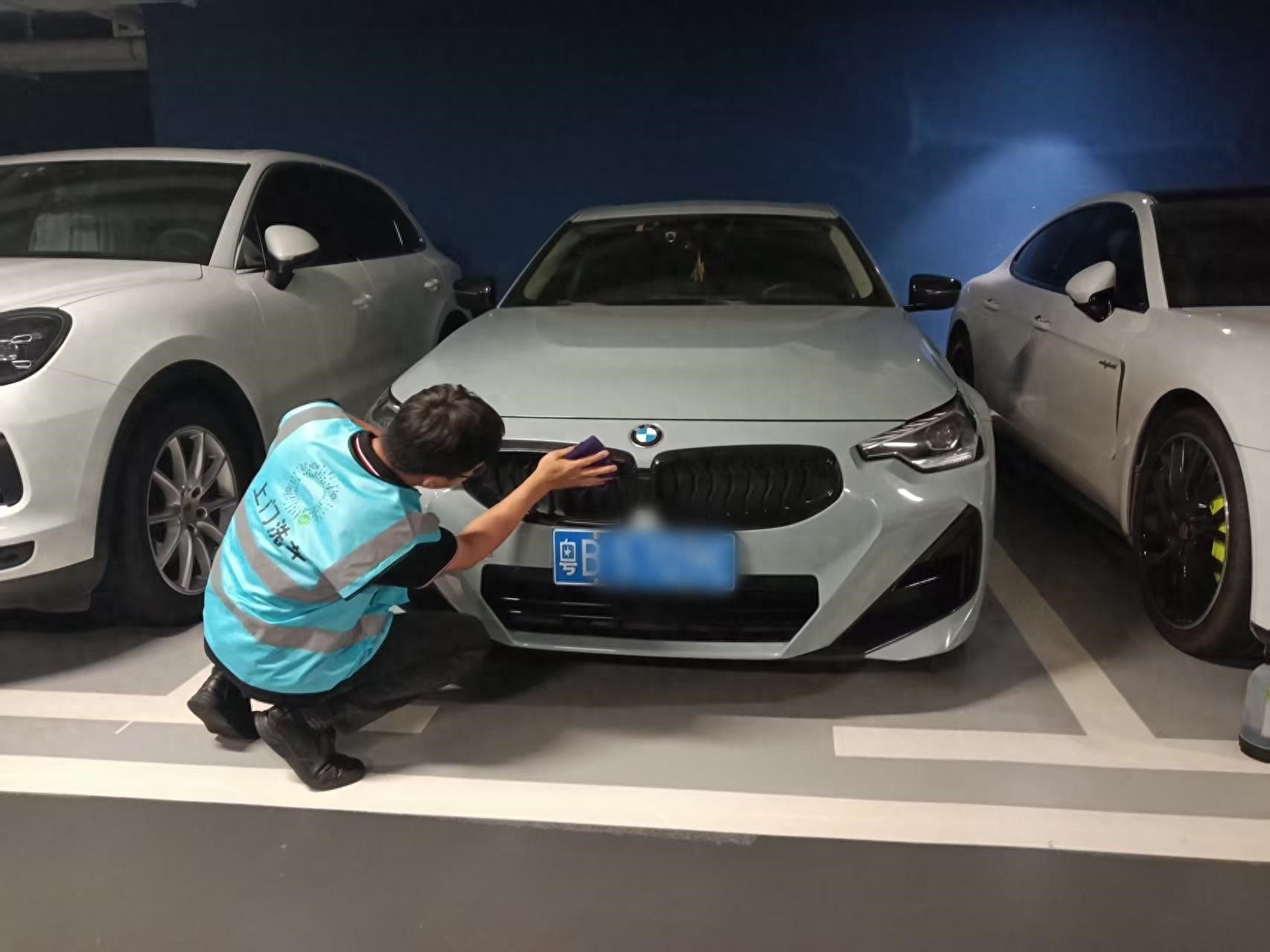 “以前所谓的上门洗车,其实就是把洗车店的水箱和高压水枪搬到了地库。不仅用水量大、污水横流,清洗剂还容易腐蚀漆面,被车主戏称为‘毁车式洗车’。”李思雨表示,其采用的是“物理除尘+化学软化+中性泡沫包裹+无水抛光”的微水精洗工艺。携带的水主要用于稀释药剂和软化泥沙,真正的清洁和上光靠的是特制的养护剂和超细纤维毛巾。其最终结果是:不伤漆、不留水渍、不需要大量清水冲洗,真正实现“车光亮、地干净”。