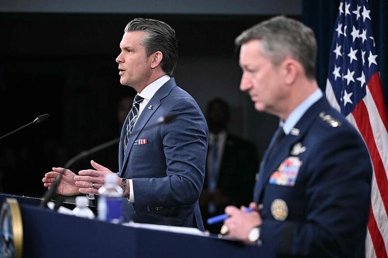 当地时间19日,美国国防部长赫格塞思与美军参谋长联席会议主席丹·凯恩就美国和以色列打击伊朗举行简报会。
