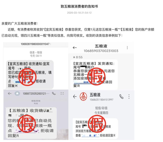 3月18日,五粮液在官网发布《致五粮液消费者的告知书》。