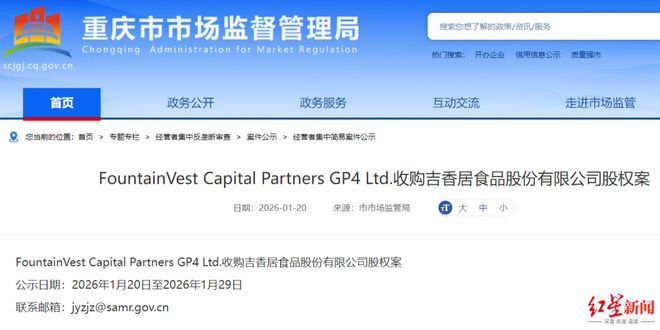 近日,重庆市市场监督管理局公示的经营者集中简易案件显示,方源资本旗下主体FountainVest Capital Partners GP4 Ltd.(“方源GP4公司”)通过其间接100%控制的川香四溢与吉香居食品股份有限公司(简称“吉香居”)以及吉香居现有股东签订《股权购买协议》,约定由川香四溢收购吉香居现有股东持有的吉香居合计92%股份。